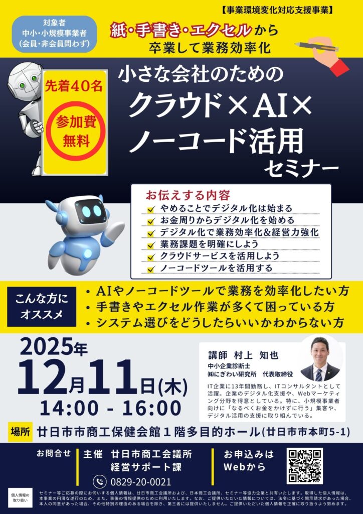 クラウドX AI X ノーコードツール活用セミナー 広島県 廿日市